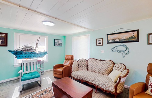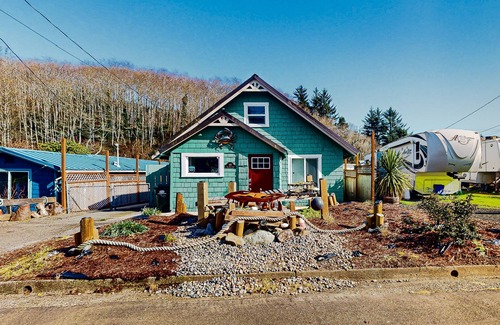 The perfect escape for your next visit to the Oregon Coast, The Cozy Crab Cottage is nestled in a prime location, is full of charm, and boasts modern amenities! Upon first pulling up to your stay, you will instantly be delighted by the home's true to its theme exterior.