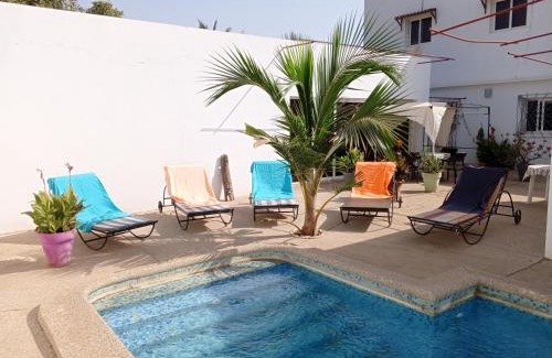 Providing a garden, Cocotiers Nianing features accommodations in Mbour. With pool views, this accommodation offers a terrace and a swimming pool. The accommodation provides a 24-hour front desk, airport transfers, a shared kitchen, and free Wifi. There is a seating area, a dining area, and a kitchen complete with an oven, a fridge, and a minibar. The guest house offers bed linen, towels, and daily room service. Guests at the guest house can enjoy an à la carte breakfast, and breakfast in the room is also available. During warmer months, you can make use of the barbecue facilities and eat on the private balcony. Sightseeing tours are available within a reachable distance of the property. A car rental service is available at Cocotiers Nianing, while walking tours can be enjoyed nearby. Nianing Beach is a 3-minute walk from the accommodation, while Golf De Saly is 10 miles away. Blaize Diagne International Airport is 27 miles from the property.
