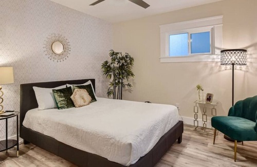 Our newly designed and furnished bedrooms with en-suite bathrooms come with a TV along with an e-lock on each door. Bedrooms all have a TV with Youtube TV and WiFi. The centrally located neighborhood is called South Park and is on the border of Balboa Park and Downtown. E-locks on both the front door and your bedroom door for self check in and keyless entry, outside and interior common area security cameras and lights for added security. Close to the 5, 94, 15, and 163 freeways. 5 minutes away from Downtown, Convention Center, Balboa Park, and the Zoo, 10 minutes from beaches, Coronado, SeaWorld, Mission Valley, and Fashion Valley.