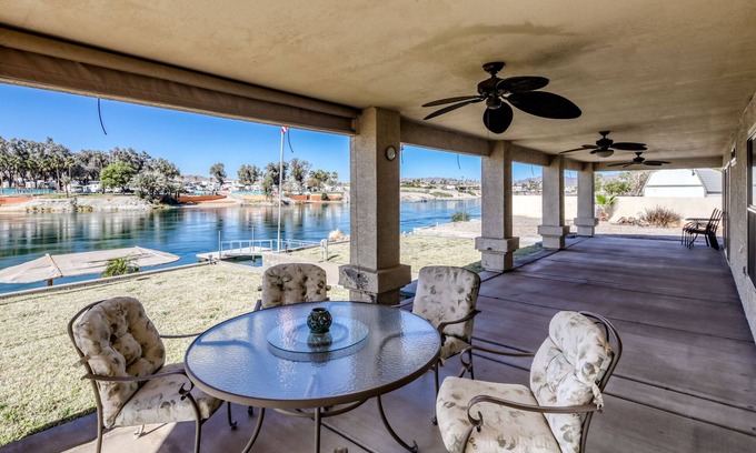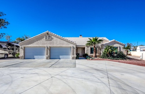 Once you check in, there will be no reason to leave. With 152 feet of private beach frontage on the Colorado River, our four bedroom home has everything you'll need to have a truly epic vacation! Nestled on over three-quarters of an acre, you'll have plenty of room for all of your water and desert toys including space for RV hookups! Launch your boat or jet skis on the launch ramp or enjoy sunsets on the dock. Waterway runs from Laughlin all the way down to Lake Havasu! This is truly a one-of-a-kind property that has it all!