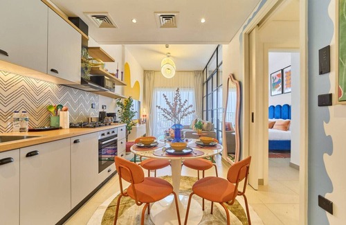 Experience vibrant living in this stylish 1-bedroom retreat in Dubai Hills! Filled with colorful decor and modern touches, this apartment offers a cozy escape right next to Dubai Hills Mall. Enjoy seamless access to top shopping, dining, and entertainment. The space features a fully equipped kitchen, a comfortable living area, and all the amenities you need for a perfect stay. Ideal for couples or solo travelers looking to unwind in a lively, convenient location while exploring the best of Dubai