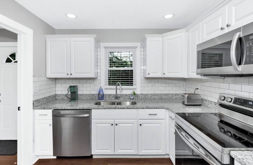 This two bedroom, one bathroom home has been newly updated. Both bedrooms have queen mattresses as well as closets and dressers (so great storage for both short and long term guests). The kitchen has been fully remodeled, and there is a Keurig coffee maker, toaster, microwave, electric stove and oven, as well as a full size refrigerator and freezer. The living room is comfortable and has seating for 5 comfortably.
