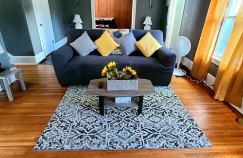 Great curb appeal, turn around driveway and backyard. Enjoy a nice cool central air. Very spacious yellow sunflower themed living room to promote happiness, optimism, enlightenment, creativity and sunshine. A game room with air hockey table and card games for entertainment. Beautiful spacious dining room with antique table and chairs that seats 6 guests. Great size kitchen with a red color theme to promote passion and energy. Has a pub to seat 2 guests, coffee bar, microwave and toaster. Large master bedroom with a king size memory foam bed and a grey color theme to promote neutrality and balance. Also has an office attached with lots of windows. The 2nd bedroom has 2 twin memory foam beds with a turquoise sea like color theme to promote a refreshing, uplifting, creative and cheerful mood. The 3rd bedroom has 1 full size memory foam bed with a navy blue color theme for calmness, serenity, importance and unity. 1 full size bathroom with essentials upstairs and half bathroom downstairs. Basement is for laundry only!