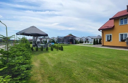 This intimate resort offers two luxurious apartments. Located in an oasis of peace and quiet, in the village of Paprotno, on the edge of the seaside resort of Gąski, the property is a 10-minute walk or a 3-minute bike ride to the beach (8 apartments are available for guests on site). This luxurious, spacious apartment is located on the ground floor of a small building. It comprises a large living room with a fireplace and TV, a well-equipped kitchen, four comfortable bedrooms, and five bathrooms with showers. Central heating is provided (some rooms have underfloor heating). Air conditioning is available in the living room (charged additionally based on consumption). Wireless internet is available. The terrace is furnished with garden furniture and loungers. Barbecue facilities are also available. The biggest summer attraction is undoubtedly the heated outdoor swimming pool (open June 15th - September 15th). A year-round sauna and jacuzzi are available for an additional fee (from April 1st to October 31st). The property features a recreational area (table tennis, table football, darts). There's also a sports field (volleyball, basketball), an attractive playground, and a recreation area with a stocked pond (free fishing) and a bonfire area. The price includes: bed linen, towels, electricity and water consumption, firewood, final cleaning, parking, internet, a cot, a high chair, and a swimming pool (open June 15th – September 15th). Nearby Gąski is anything but a large resort. It's more of a charming, idyllic summer village on the Baltic Sea, where you can enjoy a peaceful vacation. Several shops and bars open here during the summer season. A major attraction of Gąski is the second-highest lighthouse in Poland (51.2 meters high). More restaurants, open year-round, are located in neighboring Sarbinowo.