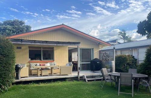 GET IN QUICK!! AVAILABLE FOR BEACH HOP AND EASTER! Welcome to Bird’s Rest. This is a well loved family bach. Less than 5 minutes to beach. Lots of games and dvds for wet days. A little bit retro. Happy, sunny vibes. Big yard to play in. Not new and perfect but comfortable and relaxing.