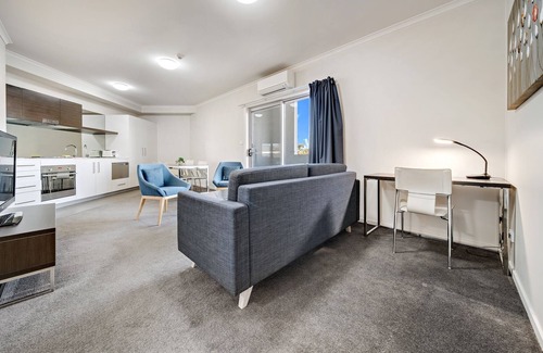 Thoughtfully designed, this convenient unit offers space and comfort in the thriving Greenway area. Featuring an open-plan living area, modern appliances, a sleek kitchen, a polished bathroom, and a generous king-sized bedroom, this unit is equipped with everything you’d need for an unforgettable stay. Modernly decorated, the apartment feels serene and private and has easy access to local shops, parks, restaurants and more. The building is part of a secure hotel complex and offers underground parking.