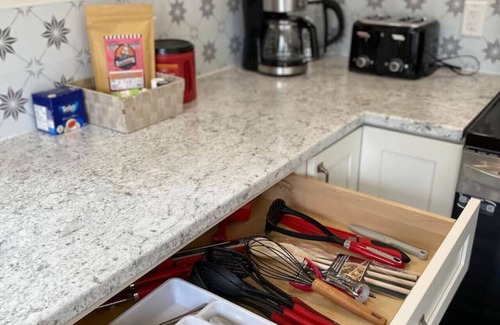 The cottages are equipped with a full kitchen - stove, microwave, fridge, sink, dishwasher. complimentary coffee/tea. Utensils, dishes and glasses, pots and pans. Coffee maker, toaster, kettle. Cooking utensils. BBQ utensils.