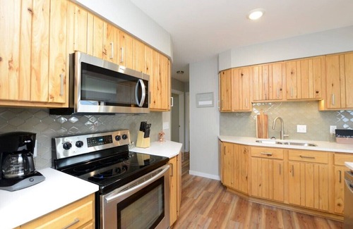 We have plenty of space for entertaining and relaxing. There's a full kitchen that looks into the back living room which features a shuffle board table, giant smart TV, a counter height table, and a couch, perfect for watching the game or your favorite movie. There is a dining room in the front of the house with seating for six. On the main floor you'll find two bedrooms with queen beds and a full bathroom. Travel upstairs and you'll find a king bedroom, another full bath with tiled shower, and a sitting area with another smart TV. Finally, the basement has another king bed as well as desk to work from and laundry. This home is the perfect spot for you to use as home base for your time in Fargo.