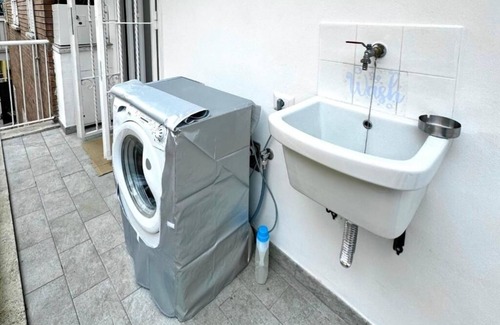 In the common area, there’s also a convenient balcony with a washing machine available to guests — ideal for longer stays or added convenience.