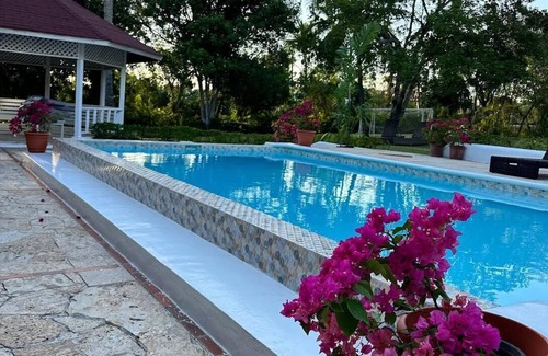 Your home away from home in La Romana with 5 bedrooms. This brilliant villa boasts 1 king bed and 4 queen beds, perfect for a large group of guests. With 7 bathrooms equipped with showers and hair dryers, convenience is key during your stay. Enjoy the AC, WiFi, and fitness room for a comfortable and relaxing experience. Laundry facilities, a washing machine, iron, and heating are also available for your convenience. Experience the ultimate getaway at our adorable villa in La Romana. Enjoy all that La Romana has to offer when you stay at our place.