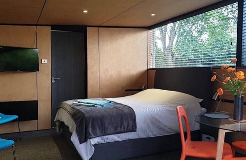 Beautiful newly refurbished contemporary studio with king-size bed, kitchenette with Nespresso coffee, kettle, toaster, microwave and single induction plate and a selection of teas, snacks and condiments for cooking.