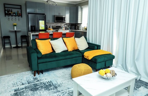 Stay comfortably in Kingston at Chateau de Chiq. This contemporary design property offers exquisitely decor and modern furnishings. With 2 Double bed and 1 king bed, guests will enjoy a restful night's sleep. The apartment features a fitness room, three(3) AC, washer and dryer machine, Smart Television with Alexa in all rooms, and WiFi for your convenience. The 2 bathrooms are equipped with hair dryers and showers. Additionally, there is an inviting living room with a cozy sofa bed. Immerse yourself in the enchanting atmosphere of Kingston while staying at our charming apartment. We'll be available to answer any questions while you stay at Chateau de Chiq.