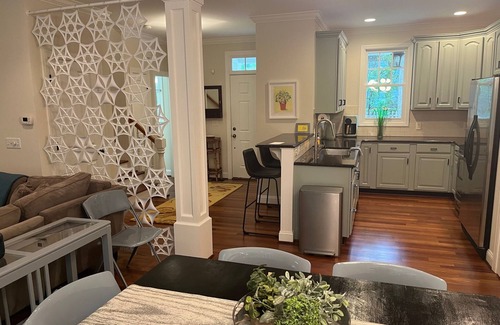 Experience Carrboro like a local in this 4-bedroom house. With 1 king bed, 2 queen beds, and 1 twin bed, this awesome property is perfect for families or groups of friends. Enjoy the serene surroundings and modern amenities like WiFi, well appointed kitchen, screened porch, each bedroom has en suite bath. Plenty of room to stretch out. Kickback, relax, and enjoy everything Carrboro