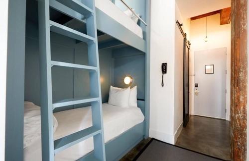 Housed in a century-old factory in Williamsburg, Wythe Hotel blends industrial charm with boutique luxury near Brooklyn’s creative heart. The South 7th Loft offers a spacious layout, soaring ceilings, and dramatic floor-to-ceiling corner windows.