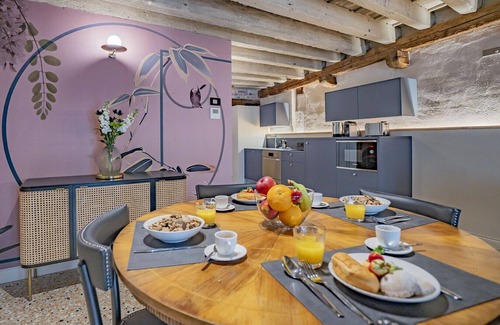 An ancient canal-side palace within minutes of St. Mark’s Square.Hidden away on its landside within the secret courtyard ‘Corte Rubbi’ on the Castello/San Marco border, this once forgotten building has been magically transformed by restorers with vision and interior design savoir-faire.Standing at the gondola-busy T-junction of the San Zulian and Bareteri canals, and encapsulating 10 dazzling apartments of varying colourway and size, the newly launched Corte Rubbi is but a stroll to some of Venice’s most iconic attractions and countless beguiling vistas on which to feast your eyes!Easy to find (when you know the way!) from the shop-lined Campo San Bartolomeo and Salizada San Lio on one of Venice’s canal-encircled ‘islands within an island’, these imaginatively furnished apartments offer Wi-Fi and a communal laundry room and are spread across 5 floors with all upper floors reached by stairs.Highly contemporary in style, air-conditioned** throughout and ranging from a charming studio for 4 to a fabulous penthouse with rooftop terrace, Corte Rubbi Il Palazzo’s 10 apartments sleep up to 42 guests if booked exclusively and include:Corte Rubbi 5514 – Ground Floor – sleeping 4 A cosy and characterful apartment with 2 bedrooms to the fore enjoying typically Venetian canal views and comprising:An attractively presented main living / dining / kitchenette space featuring low-lit exposed brickwork, Venetian terrazzo flooring, warm wooden beams overhead and furnished with a sofa, a dining suite for 4 and a well-equipped kitchenette suitable for light cooking 2 bijou and beautifully presented beamed double bedrooms of similar size and style, both facing the Rio de San Zulian canal – watch the Venetian gondolas as they glide by your windows! The apartment’s luxurious marble bathroom with bathtub and shower cubicle overAre you part of a larger group who’d like to stay close together but in separate apartments? We offer 9 other apartments within this palazzo: Corte Rubbi 1, Corte Rubbi 3, Corte Rubbi 5, Corte Rubbi 6, Corte Rubbi 7, Corte Rubbi 8, Corte Rubbi 9, Corte Rubbi 10 and Corte Rubbi 11OUR COMMENTA dainty 2-bedder with typically Venetian canal views - in a vibrant, central and endlessly fascinating part of town.A few steps away from the 18th-century church of Santa Maria Della Fava and close to a host of famous sights and attractions including the atmospheric Venetian time-capsule that is the Querini Stampalia, the fabulous Palazzo Grimani just off Campo Santa Maria Formosa, the Church of San Zaccaria with its crypt and wonderful Bellini altarpiece, and Vivaldi’s La Pietà on the sunny Riva degli Schiavoni waterfront…… A short stroll towards a very sedate pace of life lived out amongst the tranquil calles, canals and green spaces of Castello with its laid-back and very genuine neighbourhood vibe…… Or rise with the lark to embrace the atmosphere of St. Mark’s Square (‘the Piazza’) gloriously near-empty before its visitors arrive… or visit at night when the orchestras of Quadri and Florian play*, the bells of the Campanile (bell tower) toll, the marble of the Doge’s Palace glows, and the mosaics of the Basilica shimmer in the darkness…Close to a host of shops, restaurants and bars including the much-lauded Alle Testiere, the upmarket Bistrot de Venise and Alle Corone of the nearby Hotel Reali, the charming Osteria Al Portego (delicious cicheti!) and Osteria Ae Sconte, plus Ristorante Santa Maria Formosa with its tables on the campo.Also within easy reach of 4 well-stocked supermarkets – a Despar at Calle al Ponte de la Guerra, a COOP at Salizada San Lio, and a COOP and a Despar on the Riva del Carbon (near the Rialto Bridge), along with a ‘Vino Sfuso’ (wine on tap) shop on Calle del Mondo Novo and a greengrocer’s stand at Campo Santa Maria Formosa.Within a short stroll of the vaporetto (water bus) stop at Rialto for exploring the city, the ‘Traghetto’ gondola ferry carrying passengers across the Grand Canal between the Riva Del Carbon and San Silvestro in the San Polo district and the vaporetto (water bus) stop at San Zaccaria for trips around town, visits to the Lido beaches and to the Biennale Pavilions at Arsenale and Giardini.*Note that performances are dependent on weather and season**Please note that the operation of air conditioning and heating are subjected to the municipality regulation. Generally, the heating works from middle of October to middle of April, while air conditioning works between middle of Aprile to middle of October. Please contact us for further information.For arrivals between 8.00 p.m. and midnight there is an additional cost for "late arrival" of Euro 50, to be paid in cash upon arrival. We organize arrivals between midnight and one o'clock with an additional cost of Euro 100, after this time we reserve the right to accept the customer always with a supplement to be quantified according to the time of arrival.Beds will be arranged as either doubles or twins as shown in the photos. The possibility of turning a double bed into twins or vice versa can be found in the description and must be requested at least 7 days before arrival.