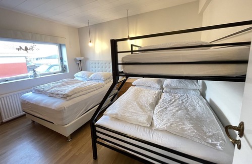 Our house has 3 bedrooms, the Master Bedroom has King Size bed ( electric bed ) , second bedroom has double bed ( 140x200 cm ) and Bunk Bed that has Double bed ( 140x200 cm ) in lower level and single bed ( 90x200 cm ) in upper level. Third bedroom has single bed ( 90x200 cm ). Our kitchen is fully loaded with everything you need. In the TV room we have 65" TV + Apple TV with all the streaming service you need, Netflix etc. From the living room you can enter spacious balcony where we have BBQ grill and you can enjoy the spectacular sea view, and it the weather is good you can see all the way to Reykjavik.