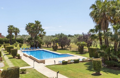 The Panoramica Golf 6 km from San Jordi boasts a cozy and comfortable apartment block called "Les Oliviers," surrounded by trees and fields. With 8 apartments on the property, you'll enjoy a quiet position, situated 13 km from the sea and the beach, right on the golf course. Amenities include a shared swimming pool (10 x 8 m, open seasonally from Jan 1 to Dec 31, pool hours 10:00-20:00), an outdoor shower, air conditioning, and parking facilities. Perfect for a relaxing vacation rental, the property offers easy access to nearby amenities, including a supermarket within 400 m and a restaurant, bar, and café just 300 m away.