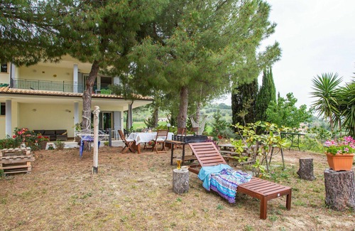 Villa Michela: Enclosed by lush greenery and serene fields, this detached cottage offers a tranquil retreat while being conveniently situated within a 2km radius from Pineto's bustling center. Boasting two apartments on the property, it provides ample space and privacy for a comfortable holiday rental. Enjoy the luxury of a vast 1-hectare natural estate with orchards, meadows, and verdant trees, perfect for outdoor activities. Relish alfresco dining on the terrace with garden furniture and a barbecue area, and revel in the convenience of on-premises parking and a carport. Seamlessly blend modern amenities with natural beauty, as the villa offers Internet Wi-Fi and a yard, ensuring a memorable and well-rounded experience.