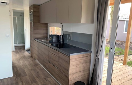 Cottage 4 stands for cosy, but stylish accommodation with all the comforts of home. The detached chalet is on one level and is suitable for 4 persons. The living room has a bright dining area, sitting area with television and kitchen with dishwasher, microwave and coffee maker. The chalet has 2 bedrooms, each with 2 single beds. In the bathroom you will find a toilet, sink and shower cabin. The garden has a furnished terrace. In the chalet you can connect to the Wi-Fi for free and you can park 1 car.