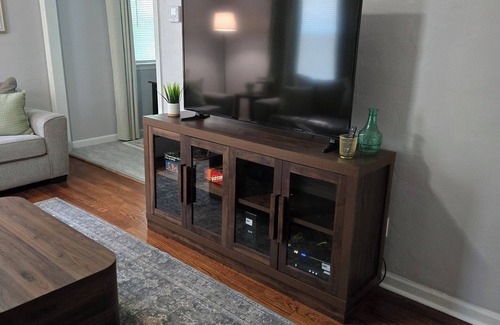 Located in Midwest City, our fully furnished 2-bedroom 1 bath home has everything you need for your stay. The living room is the perfect place to unwind and play games or watch tv. The kitchen features quartz countertops and is fully stocked for all of your cooking needs. The primary bedroom has a queen bed and tv. The second bedroom offers 2 twin beds.