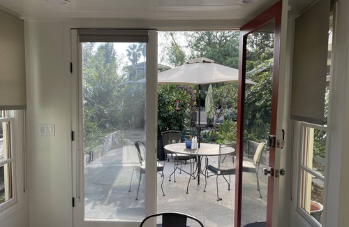 Newly renovated two-story garden cottage on the quiet walkstreets. The cottage is just a short 5 minute walk to Abbot Kinney and there are delicious cafes/restaurants just 2 blocks away. We offer bikes for you to head down to the beach which won't take you more than 8 minutes. Downstairs is a fully equipped kitchen/dinette that opens onto a lush patio with citrus trees, herbs and flowers. Upstairs is a large bedroom and living room that are slightly separated by a wall. There is a TV in both the bedroom and the living room area. The bathroom has a huge skylight in it, which makes the shower bright and sunny.