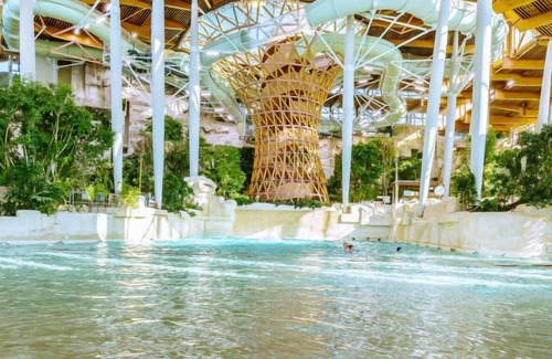 Large, child friendly resort "Park Village Nature Paris". 4 km from the centre of Bailly-Romainvilliers, 40 km from the centre of Paris, outside the resort, in the countryside. For shared use: swimming pool, indoor pool heated (seasonal availability: 01.Jan. - 31.Dec.). Shower/WC in the pool area, children's pool, slide, children's playground, petting farm. In the complex: reception, restaurant, bar, bistro, WiFi, sauna, massage (all extra), relaxation room hamam bowling, playroom, shopping facilities, boutique, central heating system, bicycle rental. Rowing boat with motor. Central parking spaces. Railway station "Val d'Europe" 6 km. Nearby attractions: Disneyland Paris 6 km, La Vallée Village 6 km, Parc des Félins 25 km, Château de Vaux-le-Vicomte 40 km. Please note: car-free holiday complex. Entertainment. Suitable for families, childminding (extra). The owner does not accept any youth groups. The photograph shows a typical example. Additional accommodations can be booked.