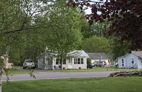 Studio Cottage in Thousand Islands with View of Beautiful St.Lawerence River. This adorable cottage has 2 twin beds a Partial kitchen full bathroom and internet TV. The kitchen has small fridge ,coffee pot, toaster oven, plates cups ,dishes and silverware. There is 6 cottages on this property a community fire pit, gas and charcoal grills for your use. Bedding is provided you need to bring your own towels. I will update photos soon last year was our first year open and some of the pictures just don't do the place justice. The grounds are well maintained and Views of the river are Beautiful. All cottages have outside electric to keep your boat plugged in.