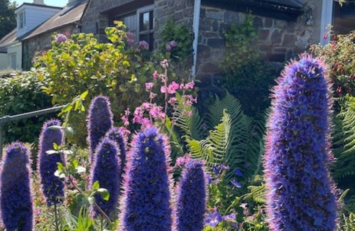Charming and secluded 3 bedroomed old cottage at the end of a quiet lane with sea views (10-15 minute walk down path to coast path). PLEASE NOTE the lane is not suitable for large vehicles. Ideal for relaxing holiday with activities to suit all. Sleeps 6 (1 double bedroom and 1 twin bedrooms and 1 room off lounge with double futon bed if required), comfy lounge, dining room, kitchen, bathroom (bath, shower and toilet) and shower/toilet. Heating throughout with modern thermostatically controlled electric radiators and a multi-fuel stove in the lounge. Lovely large garden and plenty of places to sit and eat inside and out. Please be aware that there are some steps to different levels and small children should be supervised. Sheltered yard outside kitchen. The cottage is midway between St Davids and Fishguard, easily accessible to local beaches, local pubs, shops and 10-15 minutes to the coastal path and great walks. It is fully equipped and soft furnishing beautifully made by the owner. Broadband available and pets welcome. The cottage enjoys superb sea views stretching from Strumble Head peninsula to Porthgain. It provides superb vantage point from which to track the main birds of passage that pass over the Pembrokeshire Coast National Park and the beautiful beach of Ynys Barry is approx 2 miles away. The cottage is a traditional stone built semi detached. All the accommodation is on the ground floor. Beamed ceilings and quarry tiles, keeping some of its original charm and character and is comfortably furnished and well equipped. The kitchen is fully equipped with electric cooker, fridge freezer, dishwasher,microwave oven and washing machine. There is a a separate dining room, leading to the lounge with multi-fuel stove, colour TV/DVD/CD player. Broadband is available. From the lounge is a sun room with delightful views towards the sea (this room has a double sofa bed should it be required). Off the hall there is a new fitted (2021) bathroom with electric shower over bath, a separate shower room, a double bedroom and a twin bedroom, both comfortably furnished with pine beds. .This cottage is ideally situated for naturalists and other seeking a relaxing break in all seasons.