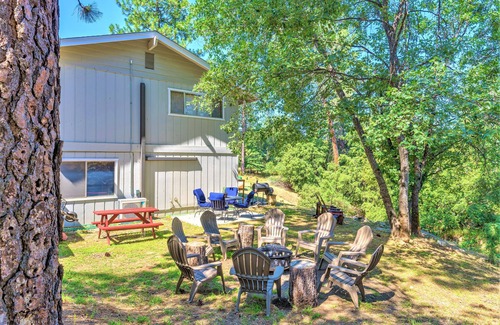 Spacious group or family home located in the pines, just 10 minutes from the Yosemite Gate entrance and less than 2 miles to Lewis Creek trailhead (Corlieu Falls) and three miles to Bass Lake. Individual ACs and heating are in all bedrooms and the living room. There are 4 TVs. The garage has an extra futon, games, a TV, DVDs, kids' books, and a table for projects, coloring cards, poker, dominoes, or Monopoly. Patio lights surround the home for evenings spent beside the propane fire pit or BBQ. Close to hiking trails and minutes from Bass Lake or Oakhurst, with easy access to Shuteye Peak for off-road fun. Everything you need for cooking and creating family memories and fun times is within quick reach in every direction. Convenient parking for vehicles and toys. This warm and inviting home feels like grandma’s house- comfy, cozy, relaxing — a place for making memories, versus just a place to sleep. For safety- Ring is on door & solar battery backup set up- See you soon!