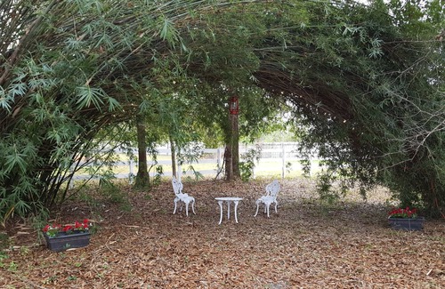 It's a very quiet neighborhood where you will hear the birds and roosters. We have a meditation deck where you can do yoga, bird watch, or just lay out and read a book. I have plenty of hammocks to use, a hot spa/jaquzzi may not be working, an outdoor shower, a bath tub, and a couple of fire pits. You can bike down to the beautiful St. John's river where there is a local nursery and they sell honey, eggs, and many plants which is only 5 miles west of us. We are also 5 miles to International World Golf where you can go to the I Max theatre and or play golf or walk around the lake and go to the farmers market or just have dinner there. We are close to Jacksonville within 10 to 15 minutes. You can take a walk around property on the trail, see the orchard with lots of grape vines, or lay out and listen to birds and get some sun. We have deer that come and visit and you are not allowed to hunt on my property but there are other areas nearby where you can hunt. I also have chickens and sometime you can have fresh eggs! Please watch out for the chicken, Mr. T. Tortoise, and Roger Rabbit when you drive in. Hope you decide to join us !