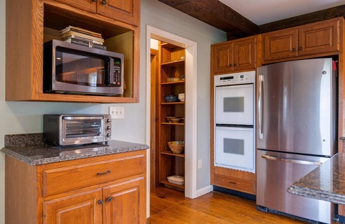 Outside, enjoy the hammock (available during summer and fall months), a fire pit, propane grill, and views overlooking the Shoreham Pinnacle.