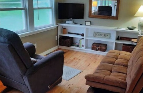 Newly-renovated, fully-furnished, 2-bedroom, 1-bath, comfortable cabin, hard-wood floors, modern kitchen with granite countertops and updated appliances, custom-tiled bathroom with glass enclosure shower.