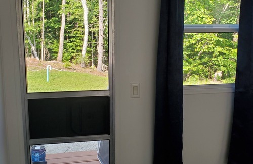 Stay comfortably in Alexandria at this 1-bedroom park model glamper on 100 wooded acres with many walking trails. Six miles to Newfound Lake, 3 miles to Ragged Mountain Ski Resort and 45 minutes to the White Mountains. This cozy space features 1 queen bed with storage below and in the large-mirrored closet. This, also, has access to the outdoors. The living room provides a sofa bed that folds down into a comfortable queen size bed. Enjoy all the comforts of home like AC, WiFi, full kitchen with coffee/tea bar, screened porch, outdoor dining space and fire pit. Our place will help you feel at home while enjoying the beauty of nature all while being close to recreational opportunities that make the area so loved.