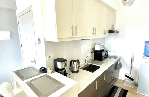Welcome to Cozy Suites AppleOne Cebu – your ultimate retreat nestled in the heart of the city, offering unparalleled peace & tranquility. This modern condo offers a cozy, family-oriented environment great for relaxation and creating lasting memories. Gaze upon the stunning skyline views as you relax in comfort and style, making Cozy Suites AppleOne Cebu your perfect home away from home. Whether a weekend getaway or extended stay, our serene sanctuary promises rejuvenation for you and your loved ones. Welcome home! Welcome to our inviting 1-bedroom condo unit located at the 7th floor in Tower 3 of AppleOne, perfect for accommodating of up to 3 guests. This condo is equipped with essential amenities such as :