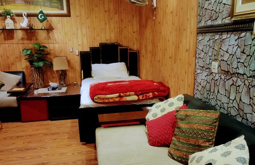 Karachi (Pakistan) is waiting for you at this enchanting 1-bedroom . The cozy space features 1 queen bed, 1 sofa bed, and 1 futon, perfect for a small group of guests. With heating, AC, iron, and WiFi available, you'll have everything you need for a comfortable stay. We hope you'll enjoy your stay at our apartment.