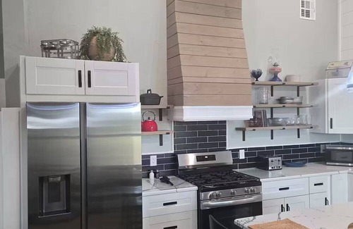 Unlike most short-term rental properties that were once someone’s primary residence, Twin Lakes Cottage (TLC) was built from the ground up to be a perfect home-away-from-home for guests. TLC is a newly built, luxury, modern farmhouse cottage on two fenced & gated acres near Shawnee Twin Lakes, Shawnee, OK. Features a King bed, large walk-in shower & soaking tub, full size washer/dryer, and a fully equipped kitchen. A six-foot wagon wheel ceiling fan centers the open studio style floor plan with 14ft vaulted ceilings.