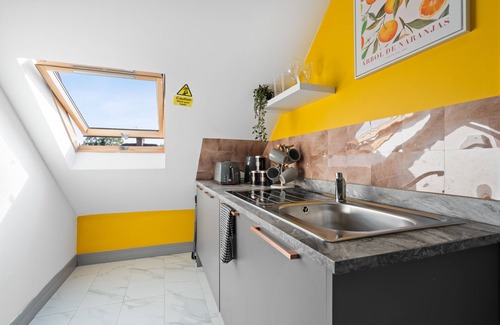 Cozy 2-Bed Attic | 5 Mins to BHX Airport & NEC is located in Marston Green. Cozy 2-Bed Attic | 5 Mins to BHX Airport & NEC provides accommodation, featuring Kitchen, Parking, Pet Friendly, among other amenities. This Apartment features Kitchen, Parking, Pet Friendly, to make your stay a comfortable one.