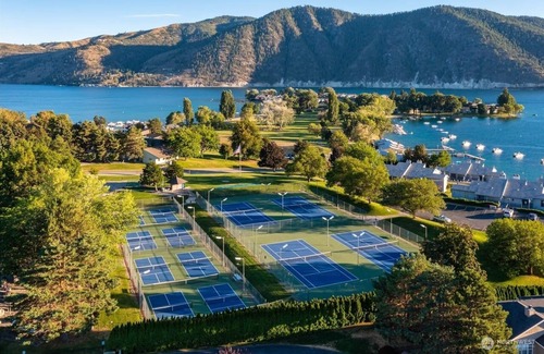 Enjoy a peaceful stay at this upper level 2-bedroom condo on Wapato Point in Manson. The bedrooms feature a perfect king bed and two pleasant twin beds. With 2 bathrooms equipped with hair dryers and towels guests will feel right at home. Additional space includes a beautiful living room with a cozy sofa bed and a full kitchen. Whether you're looking to relax or explore the area with family friendly activities, this condo has everything you need for a memorable getaway. Pool, hot tub, fitness center, mini golf, equipment rentals (bikes, kayaks, paddle boats, etc), craft time at the kiosk. Close to wine tasting. 1 minute walk to the lake/beach.