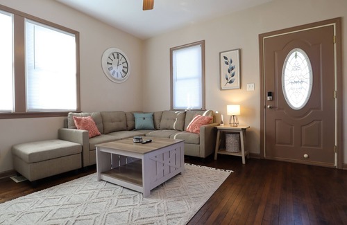 Come relax in a two bedroom - one bath cottage style home, with less than a 5 minute drive to Downtown Kenosha and Lake Michigan beaches. Enjoy the peaceful, quiet neighborhood and small park that sits right behind our property. Our home is fully equipped for anything you might need, and we would be more than happy to provide for any extra needs you might have.