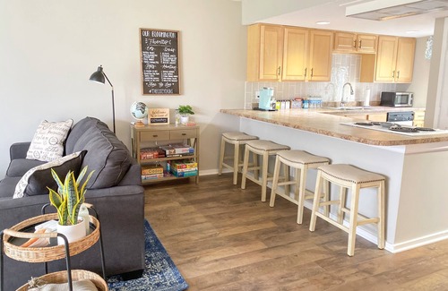A modern coastal style and freshly renovated condo located in beautiful Bloomington Indiana less than one mile from Lake Monroe. The second story cozy condo sits on the 18th hole of our gated community. Amenities include a king size bed, queen size bed and Ashley queen sleeper sofa, fast unlimited WiFi internet and a 50" 4K LED TV with Hulu Live. Perfect for football and basketball games, parents weekends and visits to gorgeous Lake Monroe.