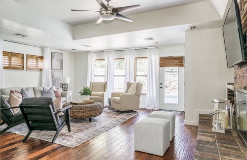 Explore Oklahoma City and stay in this newly remodeled, tastefully decorated, charming house located in a quiet and cozy neighborhood. The pool and hot tub are open year round however to heat the pool an additional fee is required.