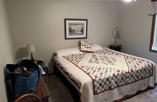 This 3-bedroom cabin is perfect for your escape to Waupaca. Nestled in a marvelous setting, this peaceful retreat offers a serene getaway for guests. The cozy bedrooms feature 1 king bed and 2 queen beds, ensuring a comfortable stay for everyone. With amenities like WiFi, a washing machine, AC, and heating, you'll have everything you need for a relaxing vacation. The 3 bathrooms are equipped with showers, providing convenience and comfort. Enjoy all that Waupaca has to offer when you stay at our place. Appleton 30 minutes. Green Bay 1 hour. Stevens Point 30 minutes