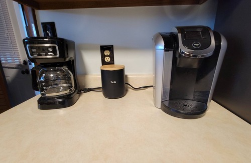 Full-size kitchen with coffee bar, air fryer, and toaster
