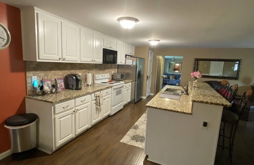 Forget your worries in this spacious and serene space. This cozy WiFi accessible home has 7 beds and sleeps up to 10 people. Great for company getaways or meetings. Great for family gatherings.