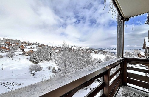 Cozy apartment with large balcony overlooking the slopes and the resort, private covered parking, 150m from the resort center and 500m from the slopes.