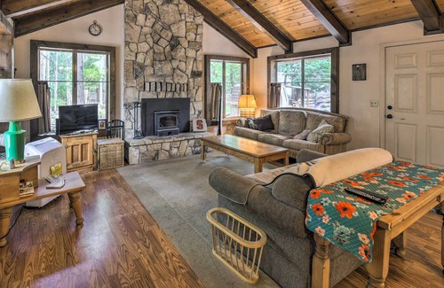 Trade your daily worries for true respite at this peaceful 2-bedroom, 1.5-bath Arnold vacation rental. Nestled in the woodlands of the Blue Lake Springs subdivision, this home provides easy access to Calaveras Big Trees State Park, less than 6 miles away, and Skyline Bear Valley Mountain, 32 miles away. Live the true mountain lifestyle as you grill your dinners on the deck and enjoy the fresh alpine air. Afterward, cozy up on the couch for a movie night with your loved ones.