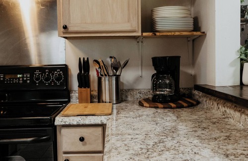 Cook up your favorites in the fully stocked kitchen, equipped with pots, pans, blender, coffee machine, and all the essentials. The dining room, just off the kitchen, offers a warm, open space for shared meals and laughter.