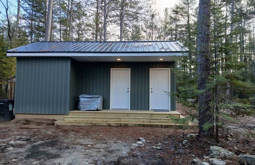The perfect spot for all your island adventures! Cozy 1 room cabin sleeps 4, featuring a bunk bed (double over a queen). With AC and heating, guest stay comfortable year round. Mini-fridge. Modern bathhouse a short walk down the driveway (please note there is no water in the cabin). Bedding and towels provided for your stay. Enjoy the surrounding nature at your own fire pit and picnic table.