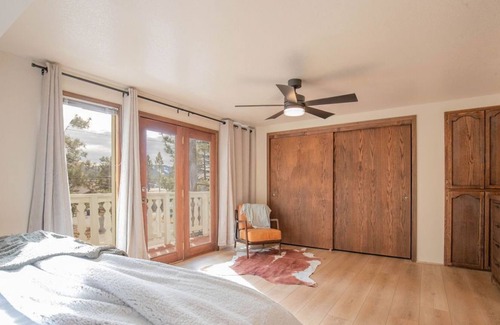 Welcome to our Big Bear cabin! Enjoy a cozy stay and view the ski resort from your front deck and upstairs bedroom. 1 mile to the lake and 4 miles to the slopes! Peter Pan area has flat roads, and easy access to the 330. Fully fenced in yard for your dogs! Parking spots for 3 cars or a boat!