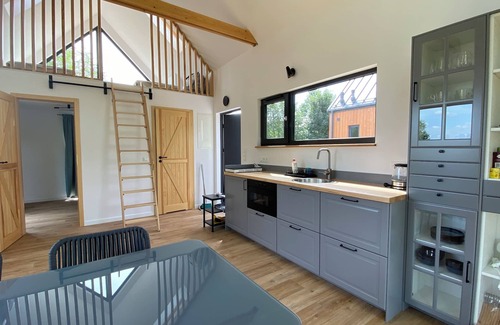 Nestled in the serene beauty of the Izery Mountains, our charming Mirsk cabin is the perfect retreat for a peaceful getaway. This cozy haven features an inviting bedroom with two snug sofa beds, while the delightful mezzanine offers space for two or three twin beds—ideal for extra guests.